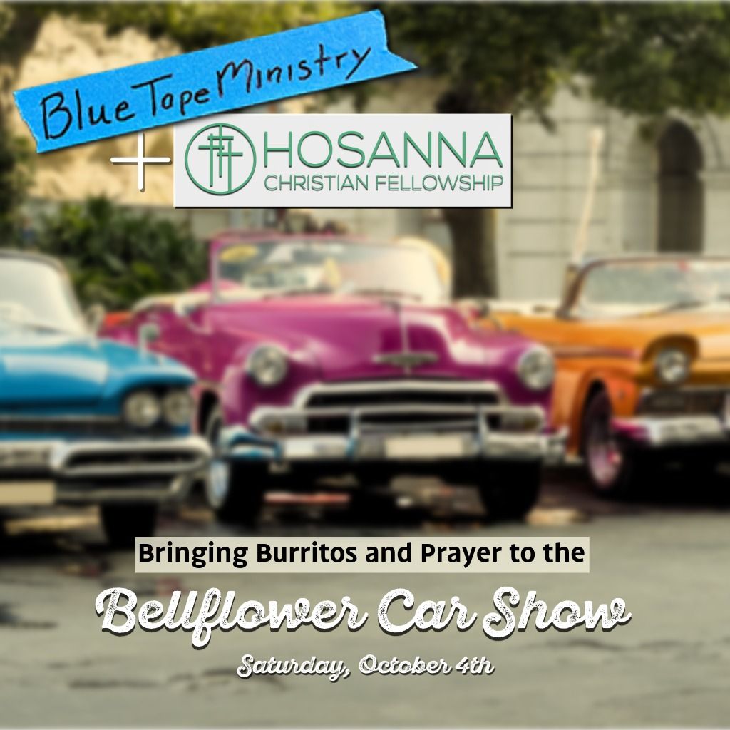 Join us for a Free Car Show at Hosanna Christian Fellowship! Blue Tape Ministry will be on site offering free burritos and prayer. Bring your family, enjoy the cars, and connect with the community.