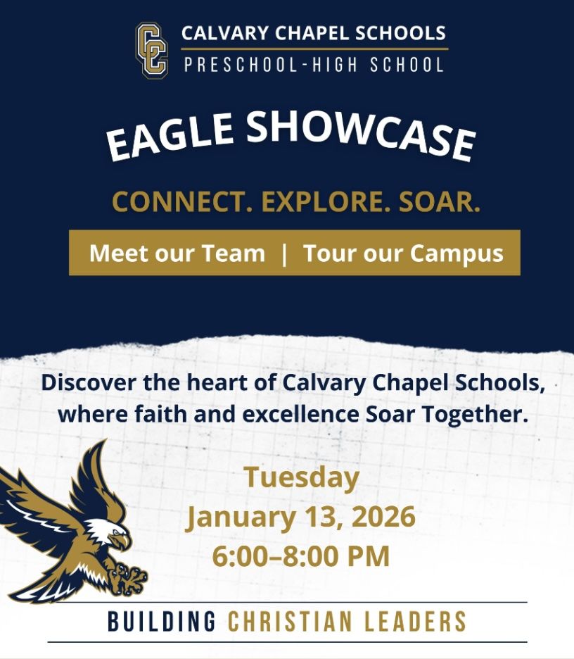 Join us for an inspiring evening designed for families exploring Calvary Chapel Schools. You’ll have the opportunity to connect with our leadership team, tour our Preschool–High School campus, and experience the Christ-centered community that sets CCS apart.