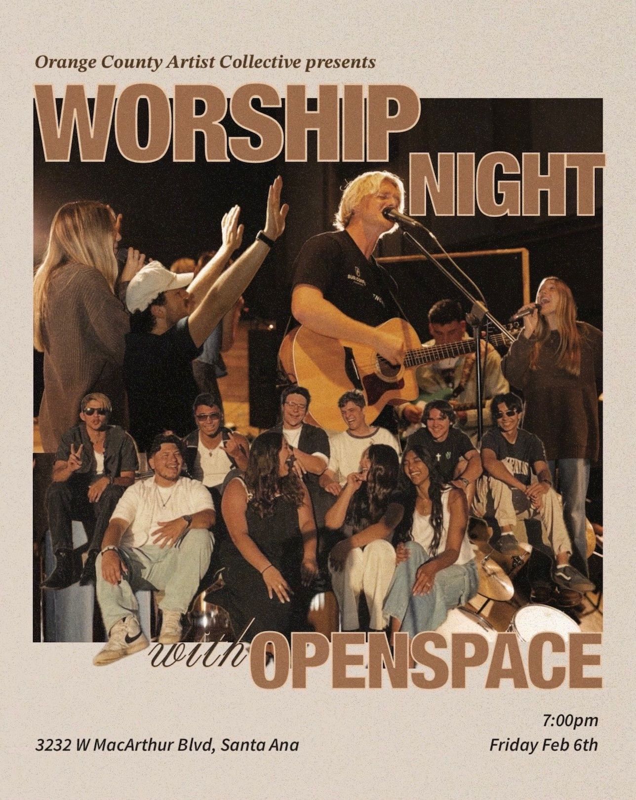 Join OC Artists Collective for a night centered on JESUS. Come as you are for worship, prayer, and community. Just lifting our voices together in faith.